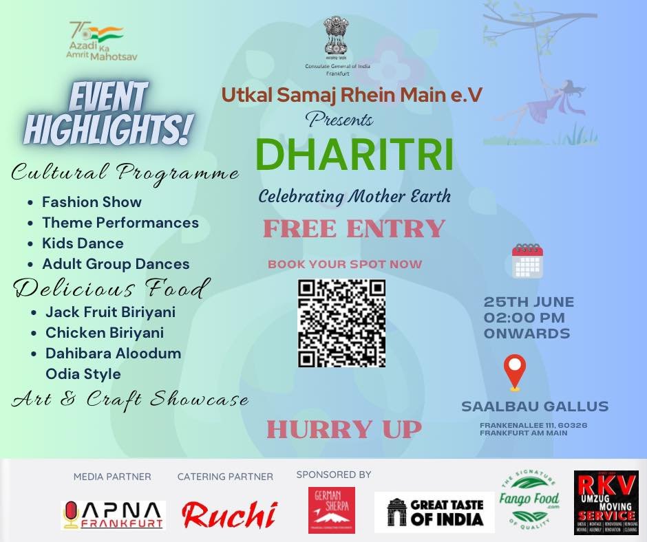 For the very first time in Germany Odia community of Frankfurt is excited to announce the Mega event of the year DHARITRI ~ Celebrating Mother Earth.