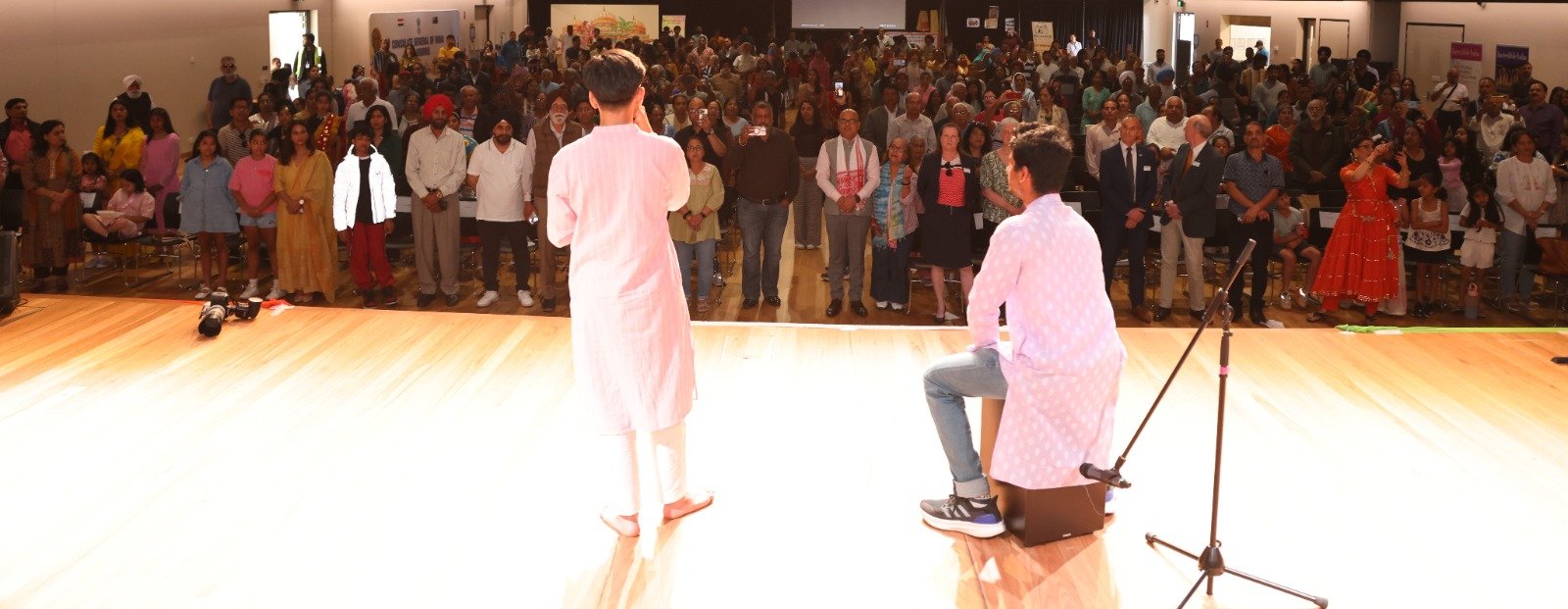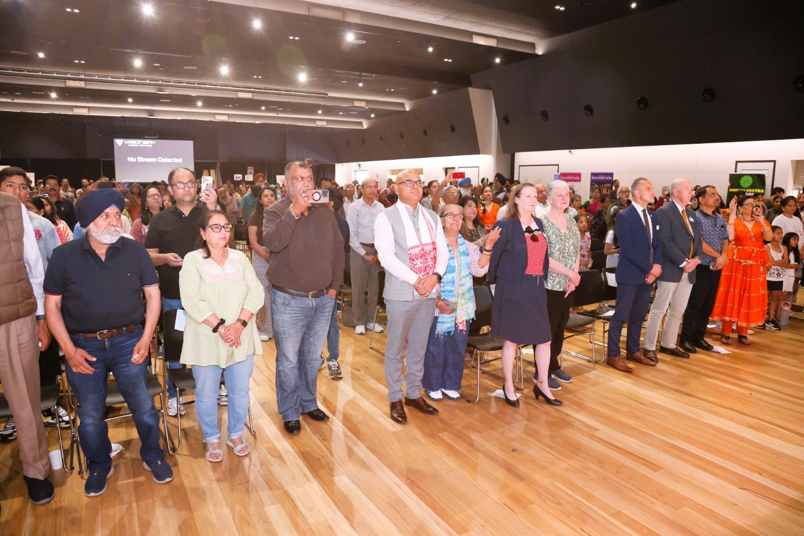 The soulful rendition echoed the spirit of unity, patriotism, and timeless devotion to the nation, bringing the Indian community together in celebration and pride.