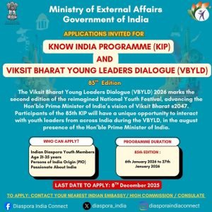 A golden opportunity for youth of Indian origin (21–35 years) to connect with India’s development journey and contribute to the Vikshit Bharat 2047 vision.