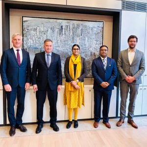 Consul General Ms. Shuchita Kishore, along with Consul (Commerce) Mr. Bhupendra Singh Nikhurpa, held a productive meeting with Mr. Klaus-Stefan Ruoff, Vice President; Dr. Jürgen Ratzinger, Managing Director – International Affairs; and Mr. Johannes Richter, India Desk, at the IHK Frankfurt.