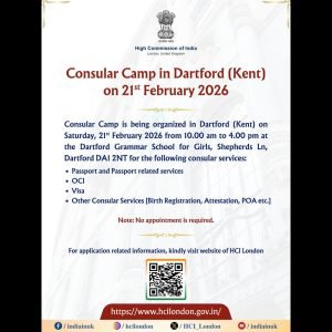 Team India in UK – High Commission of India, London is organising a Consular Camp to provide assistance for Passport, OCI, Visa, Attestation, and other consular services.