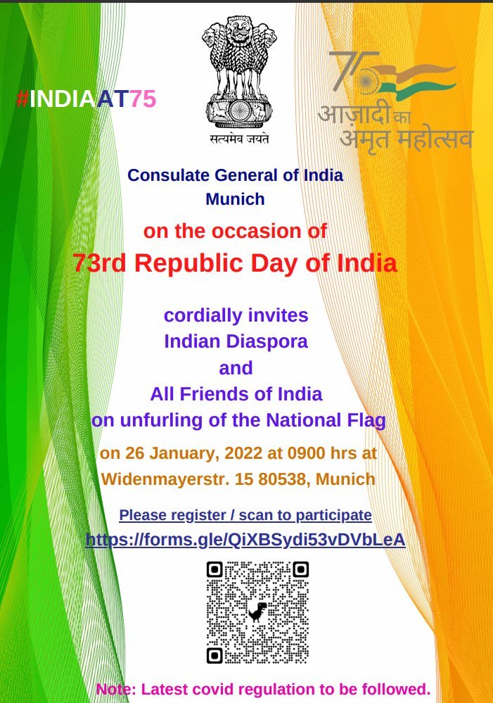 Register at https://t.co/Ag9fqcC3Np#Indien @MohitYadavIFS pic.twitter.com/95dLdVqS5q— India in Munich (@cgmunich) January 15, 2022