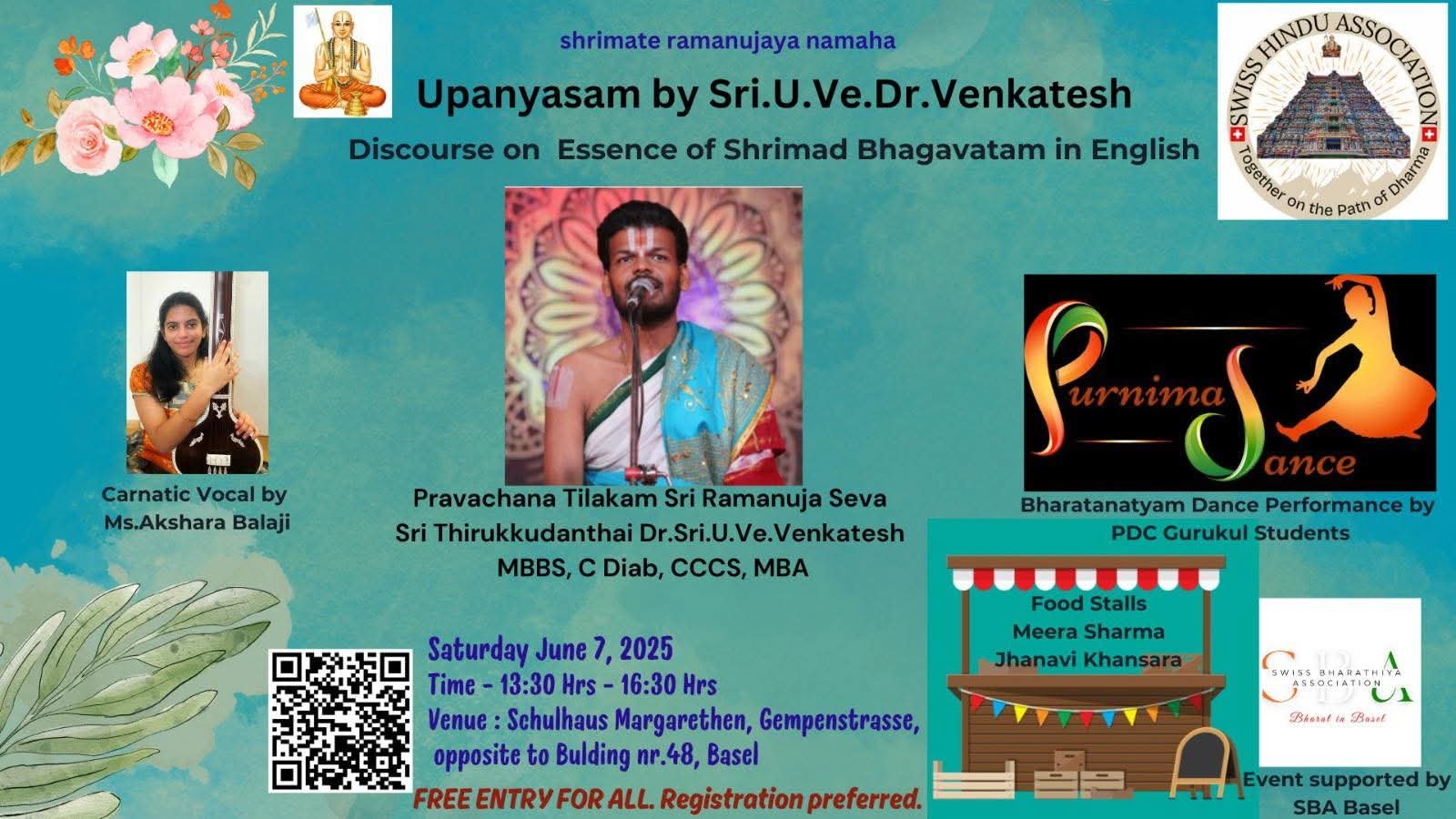 We are blessed to have Sri. U.Ve. Dr. Venkatesh Swamy as our esteemed speaker. A dedicated upanyasakar from a humble background, his entry into the spiritual path is a testament to the boundless grace of Perumal and Thaayar. Dr. Venkatesh Swamy will guide us through the profound teachings and inspiring stories within the Bhagavatam, offering clarity on its philosophical depth and devotional path.