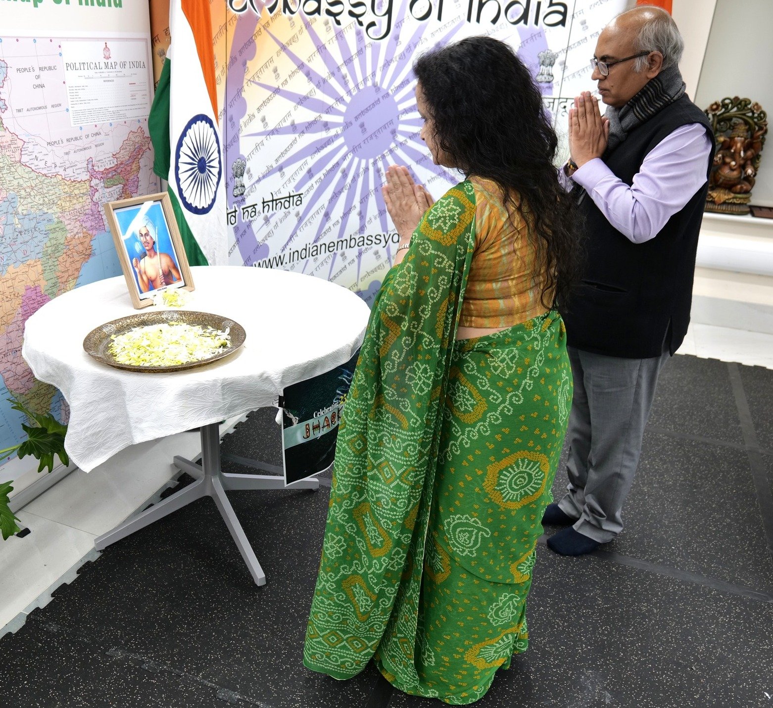 Ambassador H.E. Mr. Akhilesh Mishra paid floral tributes to the great leader and addressed the gathering, highlighting his inspiring legacy, contribution to tribal rights, and enduring relevance in India’s journey of social and cultural empowerment.