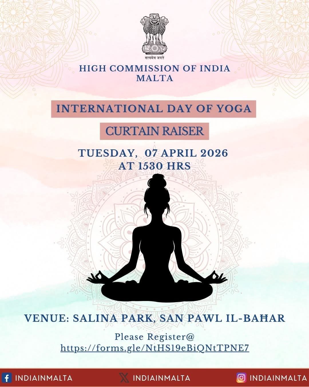 High Commission of India in Malta to Host Curtain Raiser for International Day of Yoga 2026.