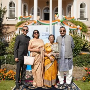 Ambassador Raveesh Kumar unfurled the Tiranga, followed by the soulful rendition of the National Anthem. The Hon’ble President of India’s address reminded us of our nation’s journey and the path that lies ahead.