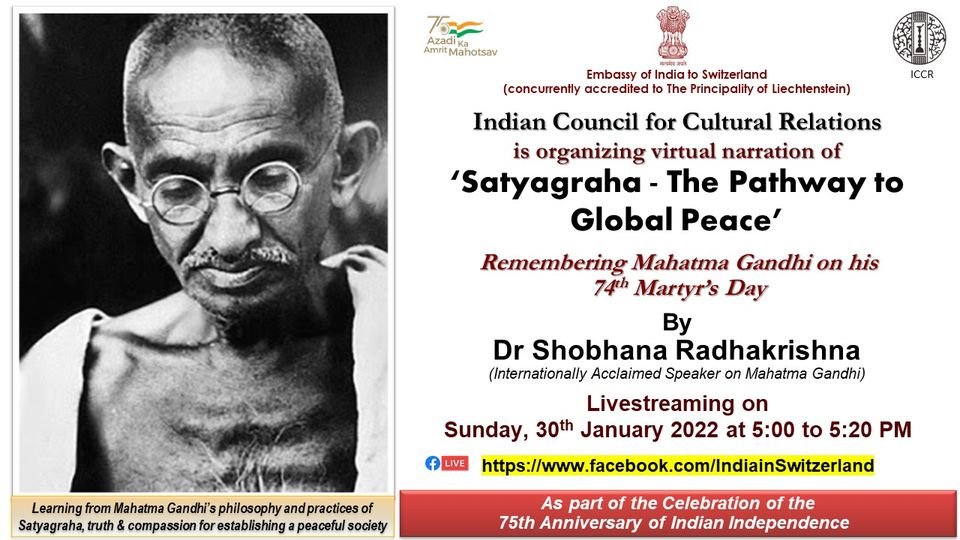 Embassy of India In Switzerland Organizing Virtual Narration of ‘Satyagraha – The Pathway to Global Peace’