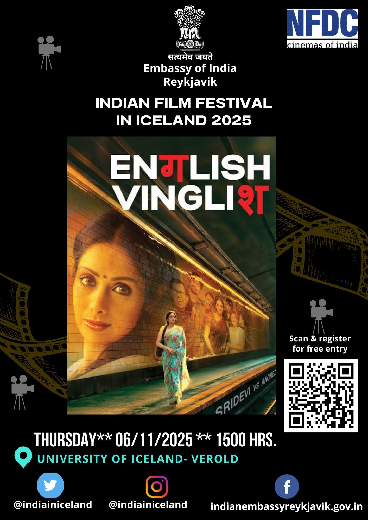 Embassy of India, Reykjavik invites everyone to the Indian Film Festival this November 2025.