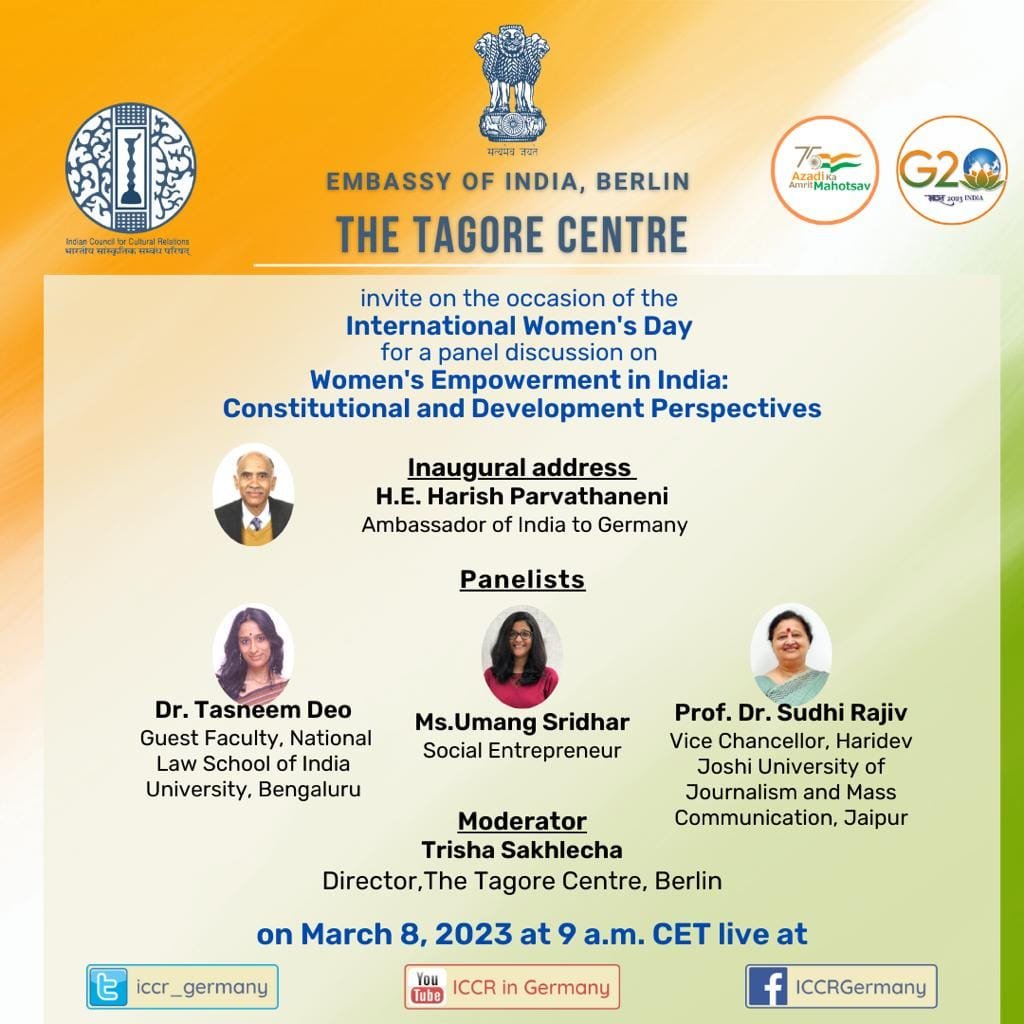 eoi berlin and iccr_germany invite all to join us for a special panel discussion on the occasion of International Womens Day 2023