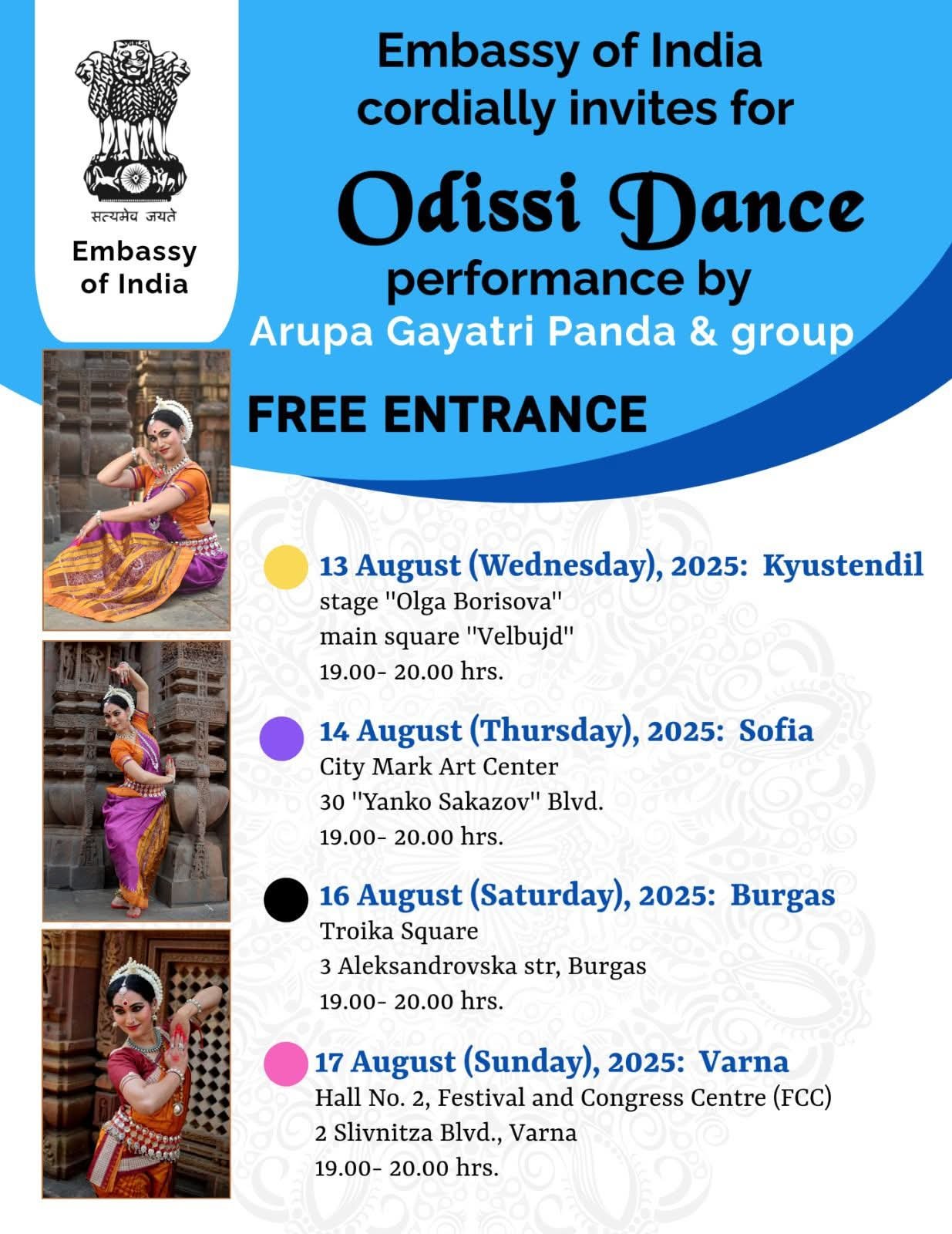Witness the timeless elegance of one of India’s oldest classical dance forms — Odissi — as it comes alive across four vibrant Bulgarian cities.