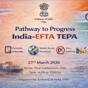 The Embassy of India in Oslo invites businesses and stakeholders to a special event highlighting opportunities under the India–EFTA Trade and Economic Partnership Agreement.