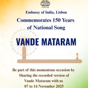 The Embassy of India, @indiainportugal, proudly invites everyone to join in celebrating a historic milestone — 150 years of Vande Mataram, the timeless song that ignited the spirit of India’s freedom movement and continues to evoke deep pride and devotion among Indians across the world.