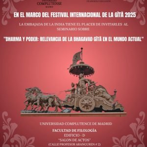 The Embassy of India in Spain, in collaboration with the Universidad Complutense de Madrid (UCM), is organising a conference on the theme “Dharma and Power: Relevance of the Bhagavad Gītā in Today’s World” on the occasion of International Gita Mahotsav 2025.