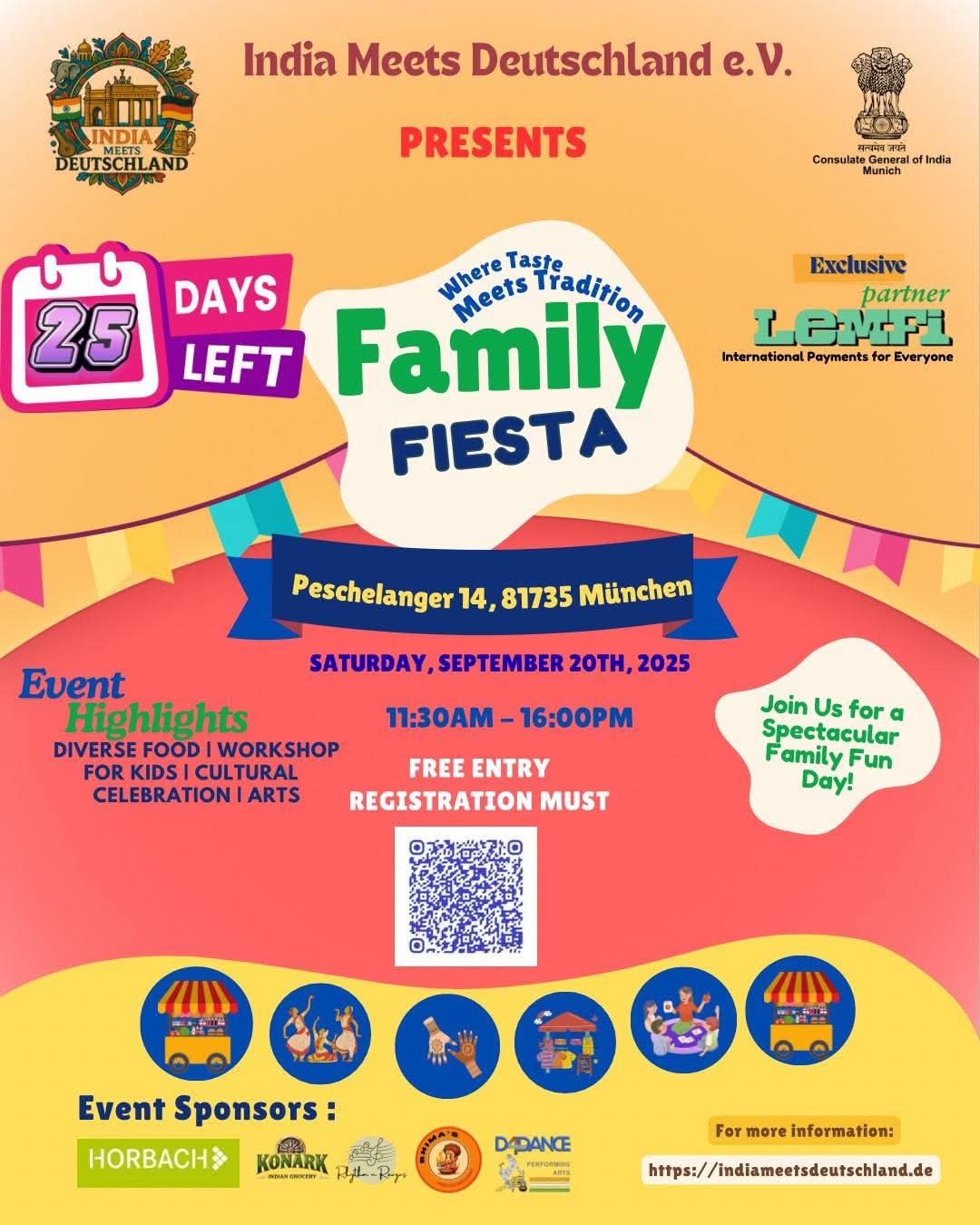 Munich, gear up for Family Fiesta 2025 – hosted by India Meets Deutschland e.V. with the warm support of the Consulate General of India, Munich 🎉