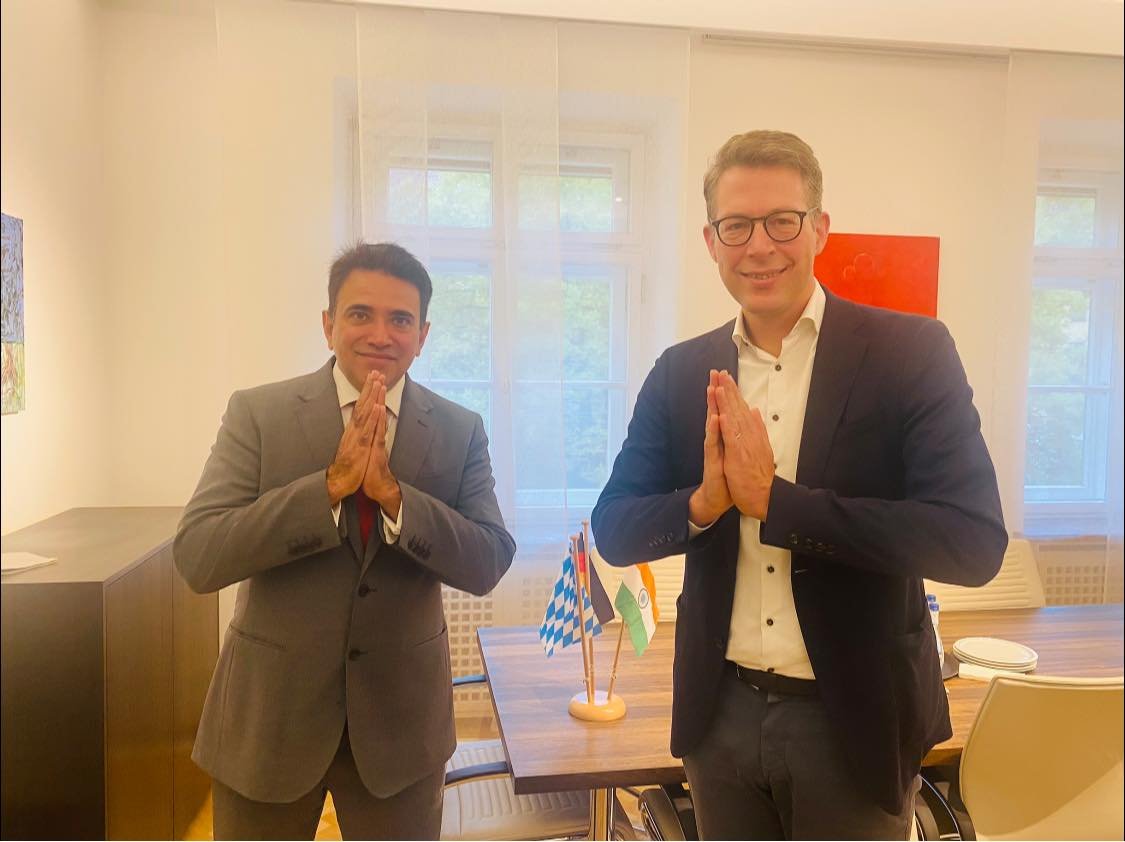Greeted Hon’ble Markus Blume Bavarian Minister of S&T with & discussed ways to strengthen India Germany links esp. with Bayern including in AI, robotics, skills etc through intensifying edu & R & D links; with Indian Diaspora as a living bridge for our two countries