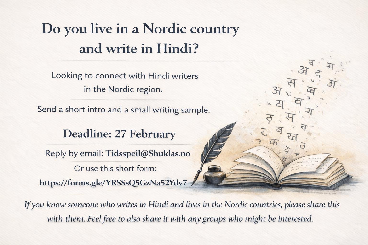 Calling all Hindi writers across the Nordic region!
