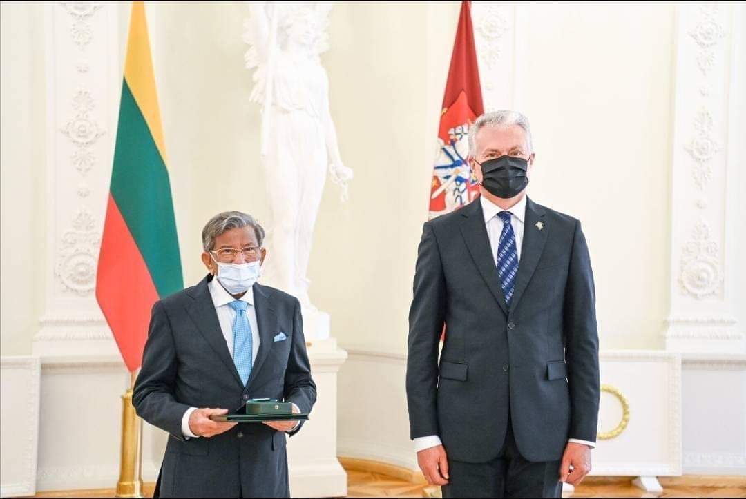 Honorary Consul of India to Lithuania conferred National Award by The President of Lithuania at an Investiture ceremony in Vilnius today