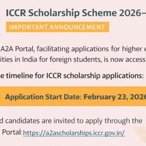 The Indian Council for Cultural Relations (ICCR) invites applications from international students for scholarships at Indian Universities and Institutes for the academic year 2026โ27.