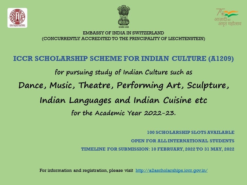 Indian Council for Cultural Relations (ICCR) Scholarship Scheme for Indian Culture for the Academic Year 2022-23.