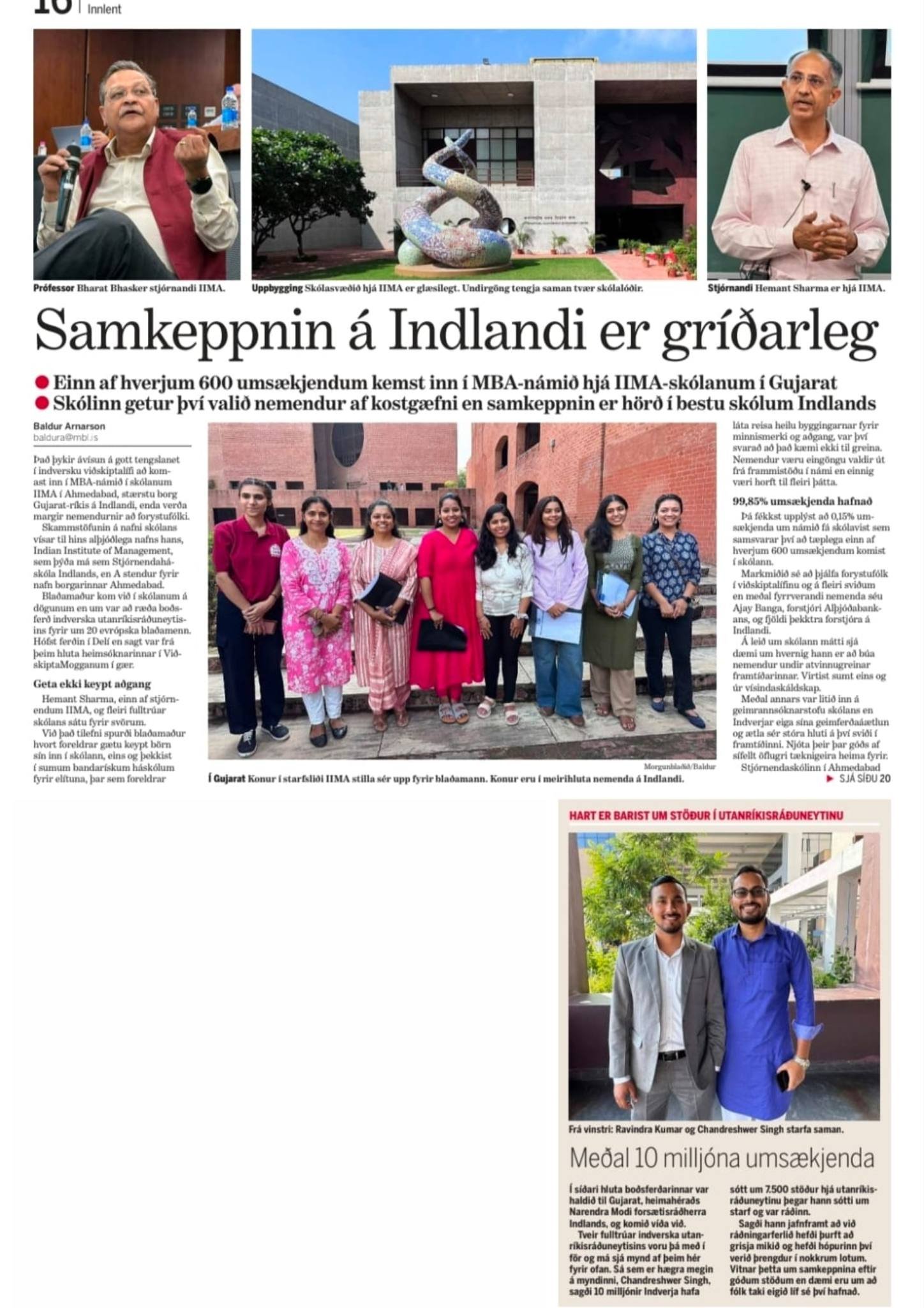 An insightful article on India by Mr. Baldur Arnarson, titled “Competition in India is enormous”, was published today in the widely read Icelandic newspaper Morgunblaðið.