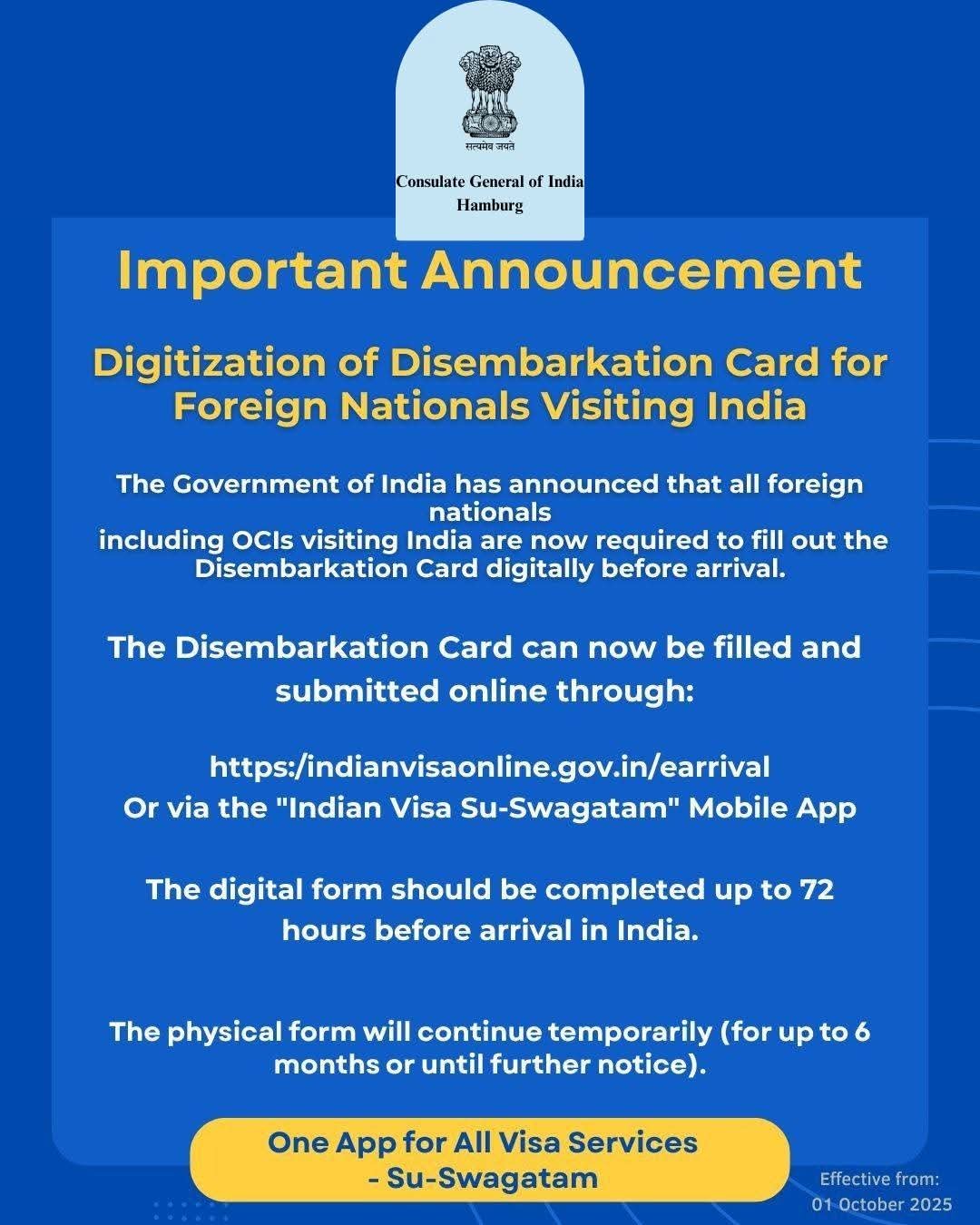 Starting 1 October 2025, all foreign nationals, including OCI cardholders, must complete the Electronic Arrival Card (E-Arrival Card) before entering India.