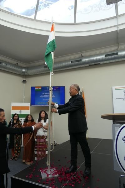 The 76th Independence Day of India was celebrated in the Consulate with much gaiety. The flag-hoisting ceremony, held at 1000 hrs, was attended by about 250 members of Indian community and friends of India. The Hon’ble President’s address to the Nation on the eve of the Independence Day was read out by Consul General John H. Ruolngul. The occasion also marked the 75th Anniversary of Independence and CG remembered the great Freedom Fighters whose sacrifices led to independence and took the opportunity to brief the gathering on various initiatives of the Consulate, in particular, and the Government of India, in general, and urged the Indian Diaspora to remain connected to the Consulate and to their roots back in India. The cultural programme included a song by Indian children living in Hamburg, German dancer Nina Wagner dancing to Bollywood patriotic songs and a Classical Dance performance by Bharatanatyam Performance Group Vaikhari (Ananaya Karmakar, Arjama Mukherjee and Shobhita Praveen) from Hamburg. The occasion also provided an opportunity to interact and exchange ideas with the Indian community and students living in the jurisdiction of this Consulate (Hamburg, Bremen, Lower Saxony and Schleswig-Holstein).