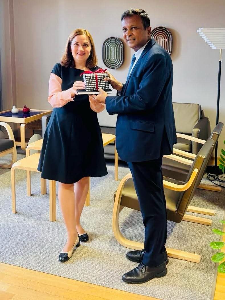 Ambassador Hemant H. Kotalwar met with Finnish Minister of Social Security Sanni Grahn-Laasonen to discuss enhancing cooperation on social security matters concerning the Indian diaspora and to explore potential bilateral collaborations in health technology between India and Finland.