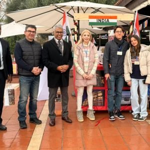 High Commissioner Mr. Manish Prabhat inaugurated the High Commission of India Pavilion at the Grammar School, Nicosia, celebrating India’s vibrant craft, culture, cuisine, and tourism. The ceremony was joined by Senior Headmaster Stephen Patsalos, Second Headmaster Costas Christoforou, and the school faculty.