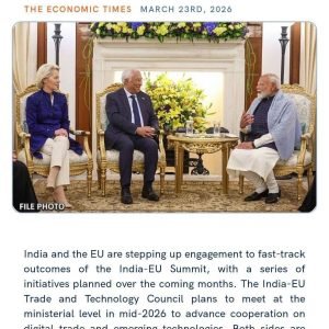 India and the European Union are intensifying efforts to accelerate trade and technology discussions, aiming to strengthen economic and strategic ties. The fast-tracked talks focus on: