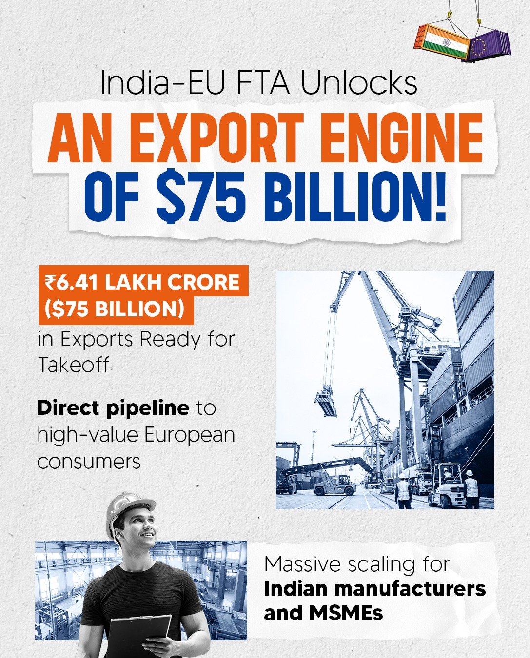 The India–EU Free Trade Agreement marks a historic milestone in NewIndia’s trade engagement with the EuropeanUnion, opening up a world of opportunities for businesses, investors, and citizens alike.