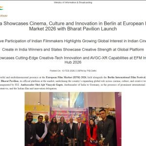 India showcased cinema, culture and innovation at the European Film Market 2026 in Berlin with the launch of the Bharat Pavilion, highlighting the vibrancy and global appeal of Indian storytelling.