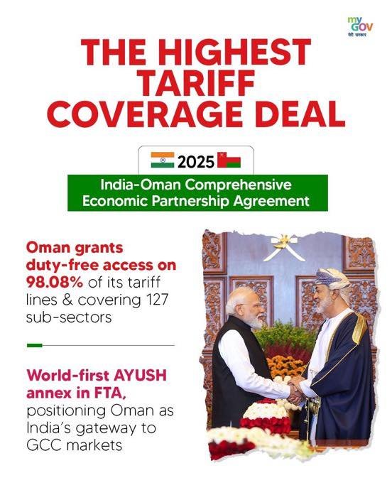 ➡️ India has signed three major FTAs with the UK, New Zealand, and Oman, unlocking duty-free access and boosting exports and investment flows.