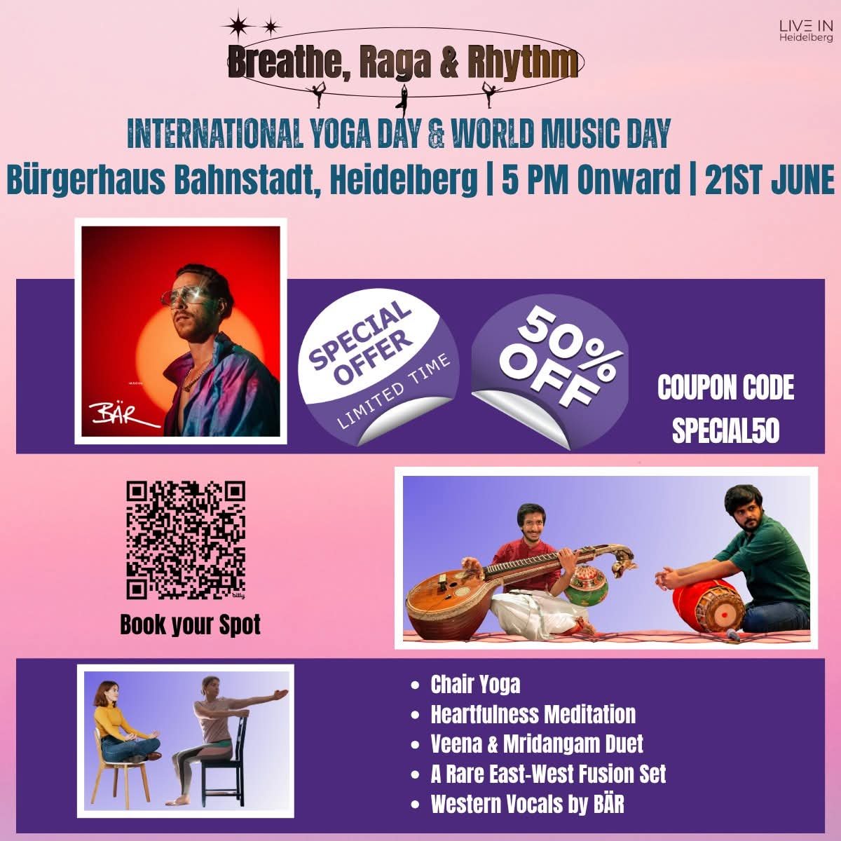 Celebrate International Yoga Day & World Music Day with a unique experience that soothes the soul and lifts your spirit — now at half the price for a limited time! 🎉