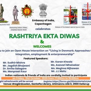 Embassy of India, Copenhagen warmly invites you to celebrate Rashtriya Ekta Diwas and take part in an Open House discussion on “Living in Denmark: Approaches to Integration, Employment, and Entrepreneurship.”