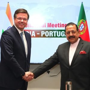 The Hon’ble Minister of State in the Department of Atomic Energy of India, Jitendra Singh, met with the Hon’ble Minister for Reforms of Portugal, Gonçalo Matias, on the sidelines of the AI Impact Summit 2026.