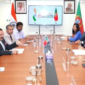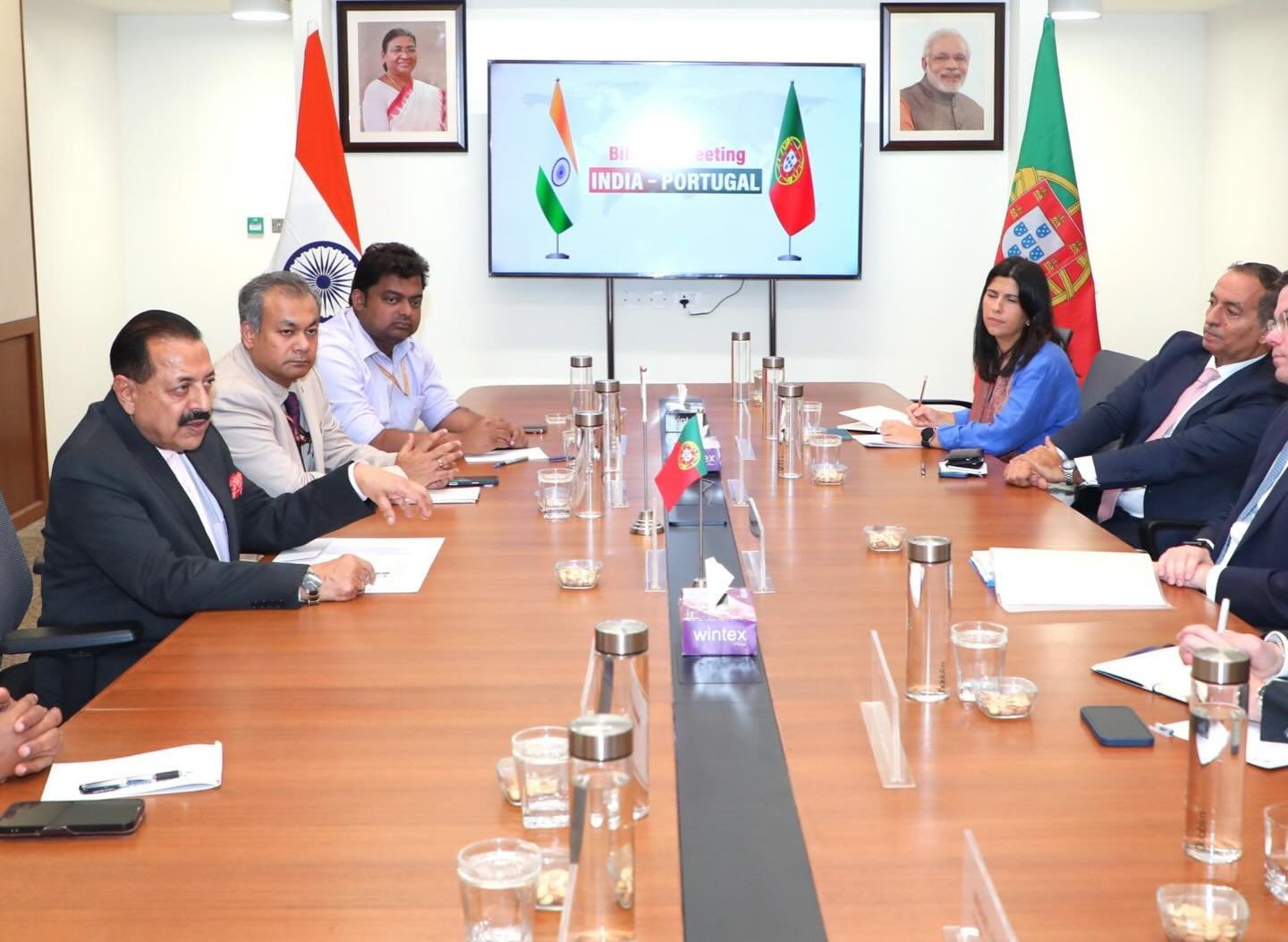The Hon’ble Minister of State in the Department of Atomic Energy of India, Jitendra Singh, met with the Hon’ble Minister for Reforms of Portugal, Gonçalo Matias, on the sidelines of the AI Impact Summit 2026.