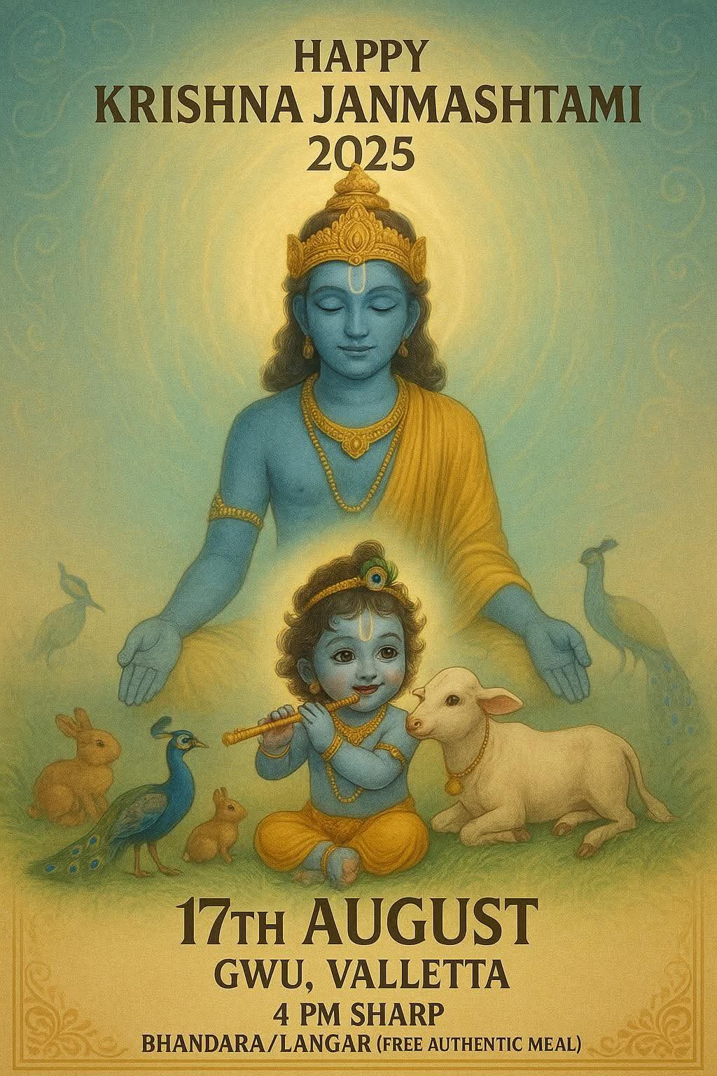 Join the Grand Krishna Janmashtami Celebrations in Valletta on 17th August.