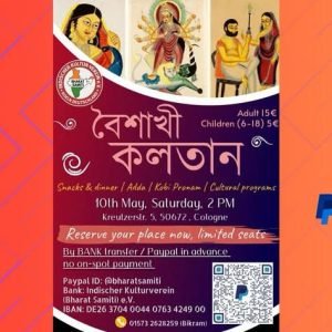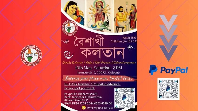 Pre-registration under our PayPal id: bharatsamiti Join The Nababorsha on 10th May In Cologne
