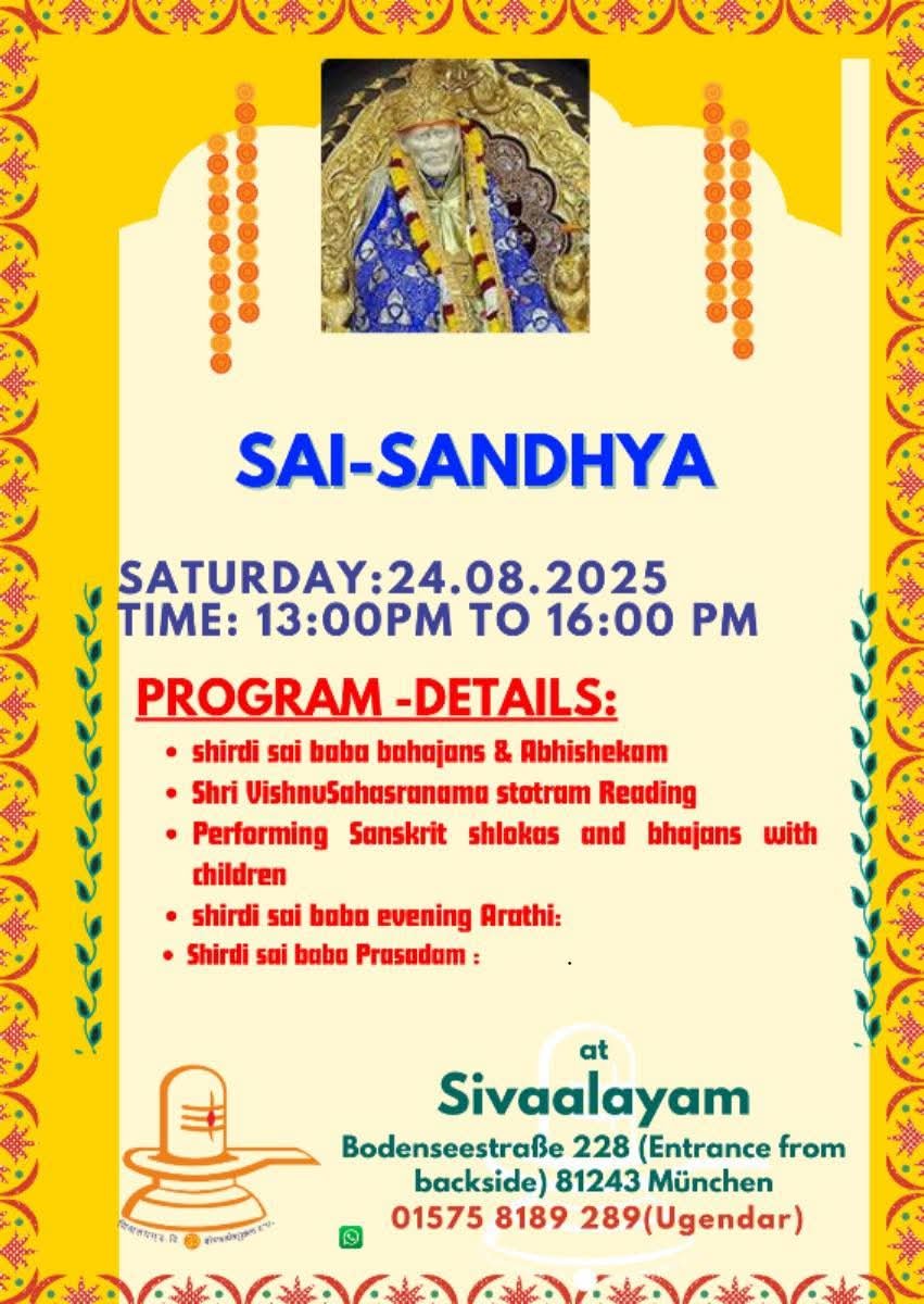 ๐ Venue: Sivaalayam, Bodenseestraรe 228 (Entrance from backside), 81243 Mรผnchen