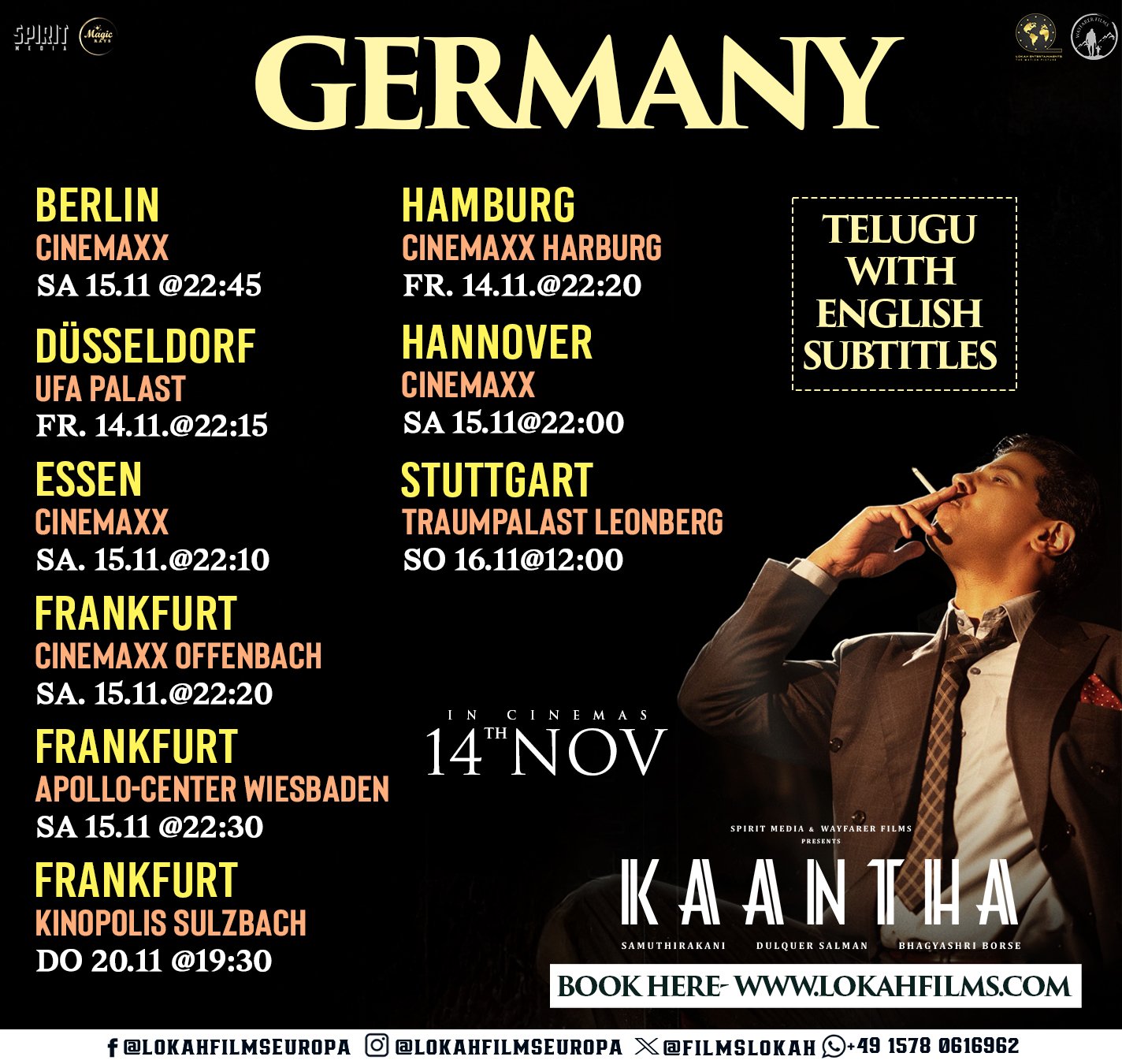 This high-octane film delves into the world of fame, ambition, and obsession, packed with unexpected twists and powerful performances. Don’t miss the cinematic excitement as Kaantha hits theatres across Germany from 14 November