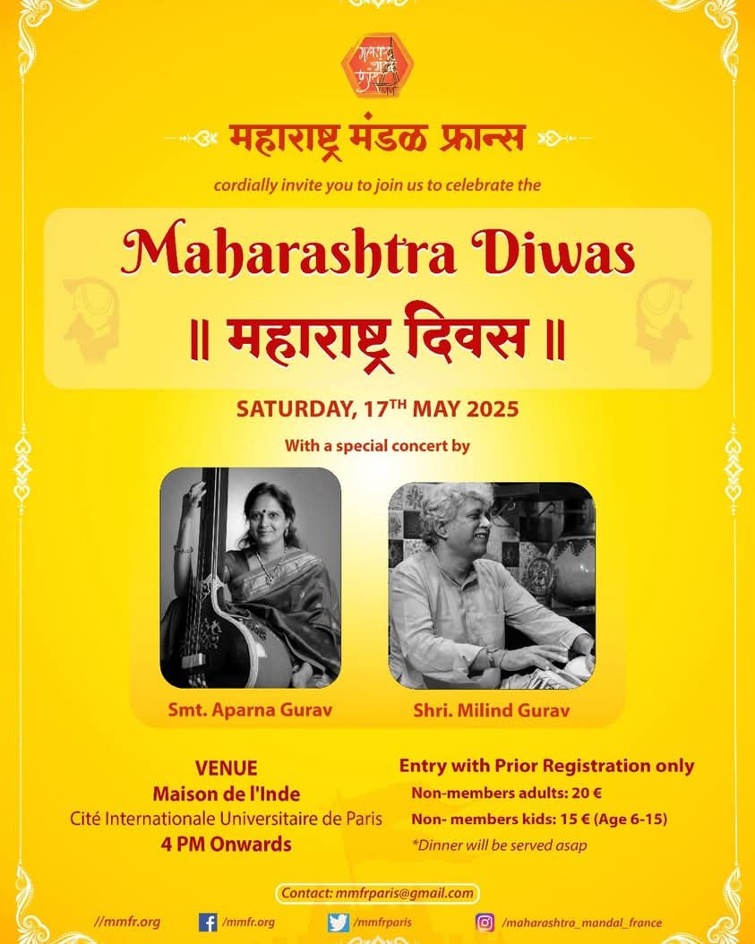 Maharashtra Mandal France invites you to celebrate Maharashtra Diwas.