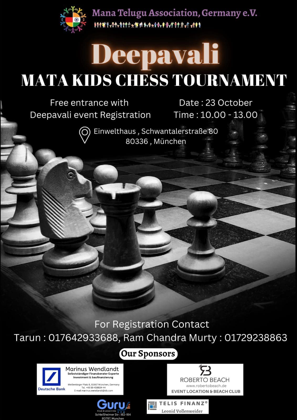 గ్రహీత మన భారత తేజం పద్మ విభూషణ్ శ్రీ విశ్వనాధ్ ఆనంద్ గారి స్ఫూర్తితో,పిల్లలలో మేధస్సును ప్రోత్సహించే దిశగా (MATA) మన తెలుగు అసోసియేషన్ జర్మనీ వారి ఆధ్వర్యంలో జరగబోవు “దీపావళి – 2022” ![]()