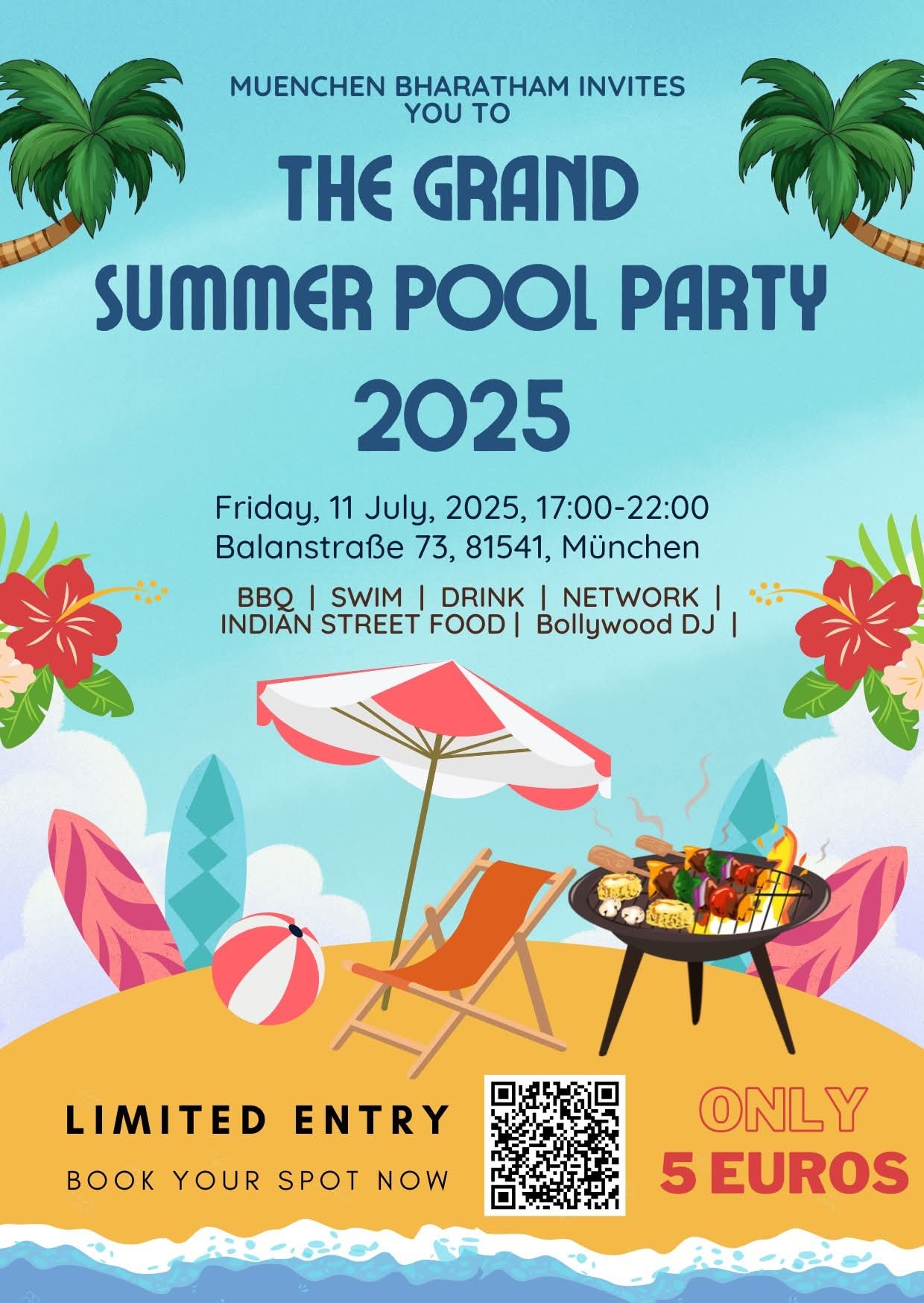 Get ready, Munich! Summer is heating up and so is the excitement for The Grand Summer Pool Party 2025, hosted by Muenchen Bharatham on Friday, July 11. Early-bird registration is now open – don’t miss your chance to join the splash for just 5€!