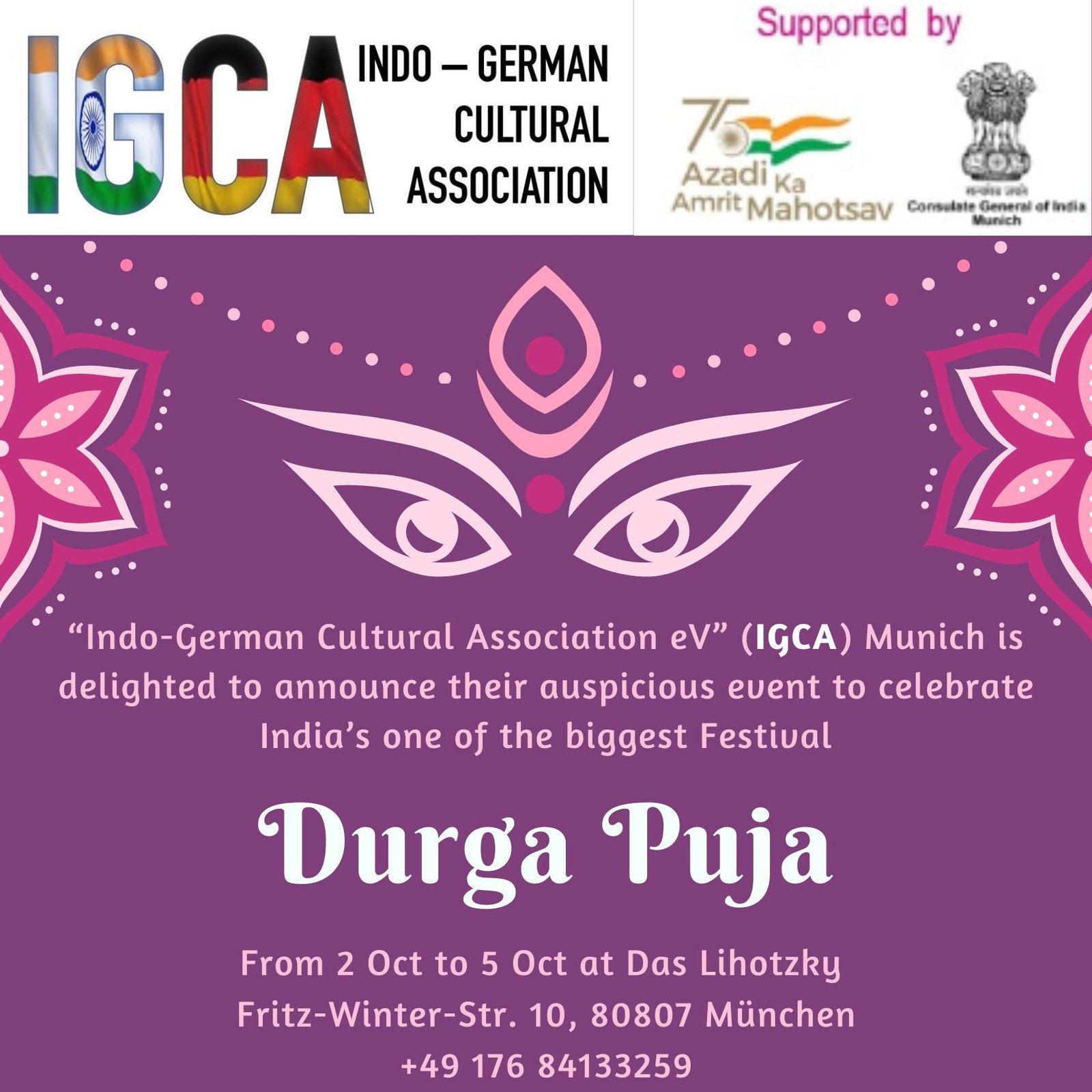 “Indo-German Cultural Association eV” (IGCA) Munich is delighted to announce their auspicious event to celebrate India’s one of the biggest Festival “Goddess Durga Puja & Navratri” event for the 13th time in Munich