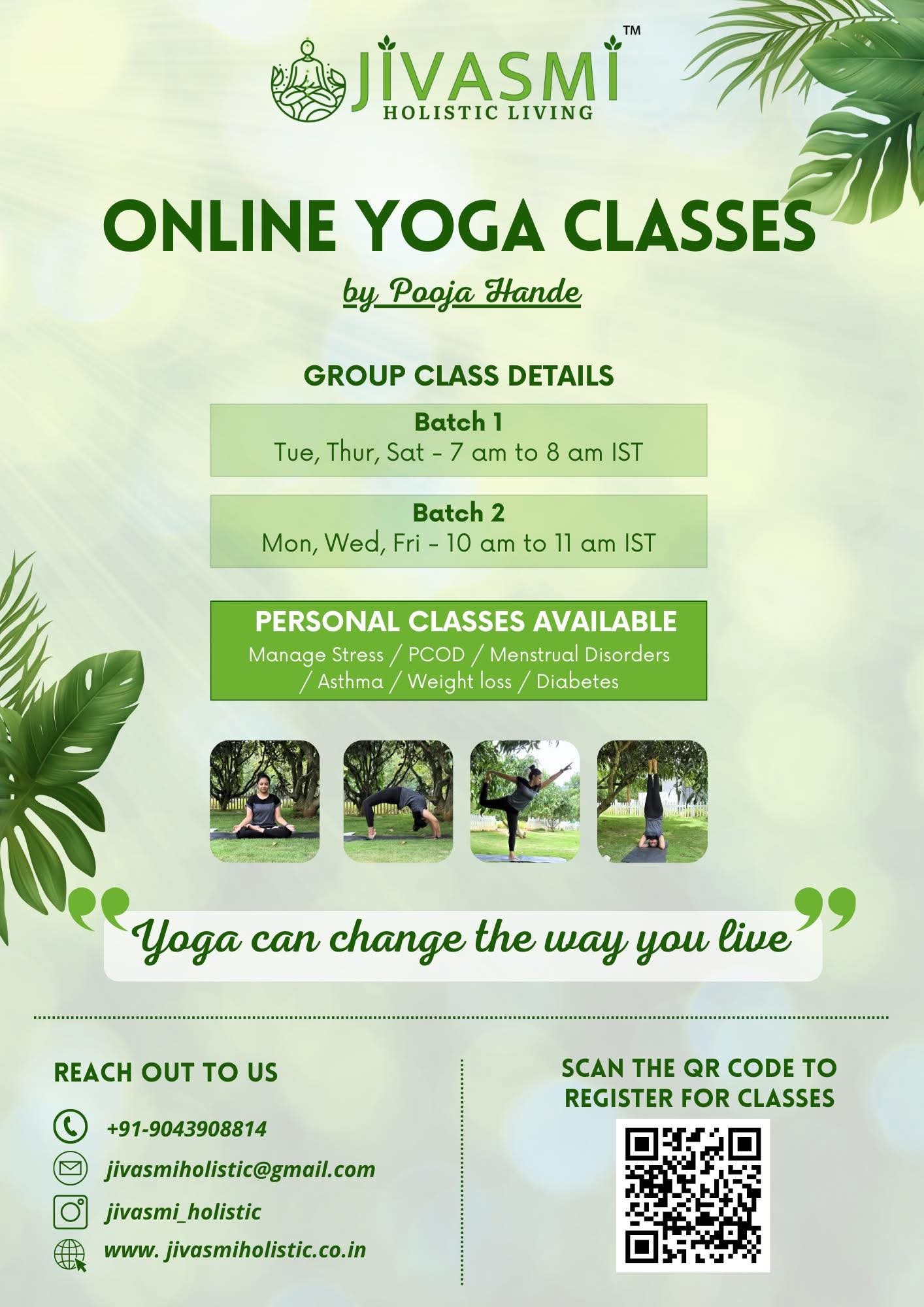 Jivasmi Holistic Living  ‘Online Yoga Classes’ by Pooja Hande from 1st April.