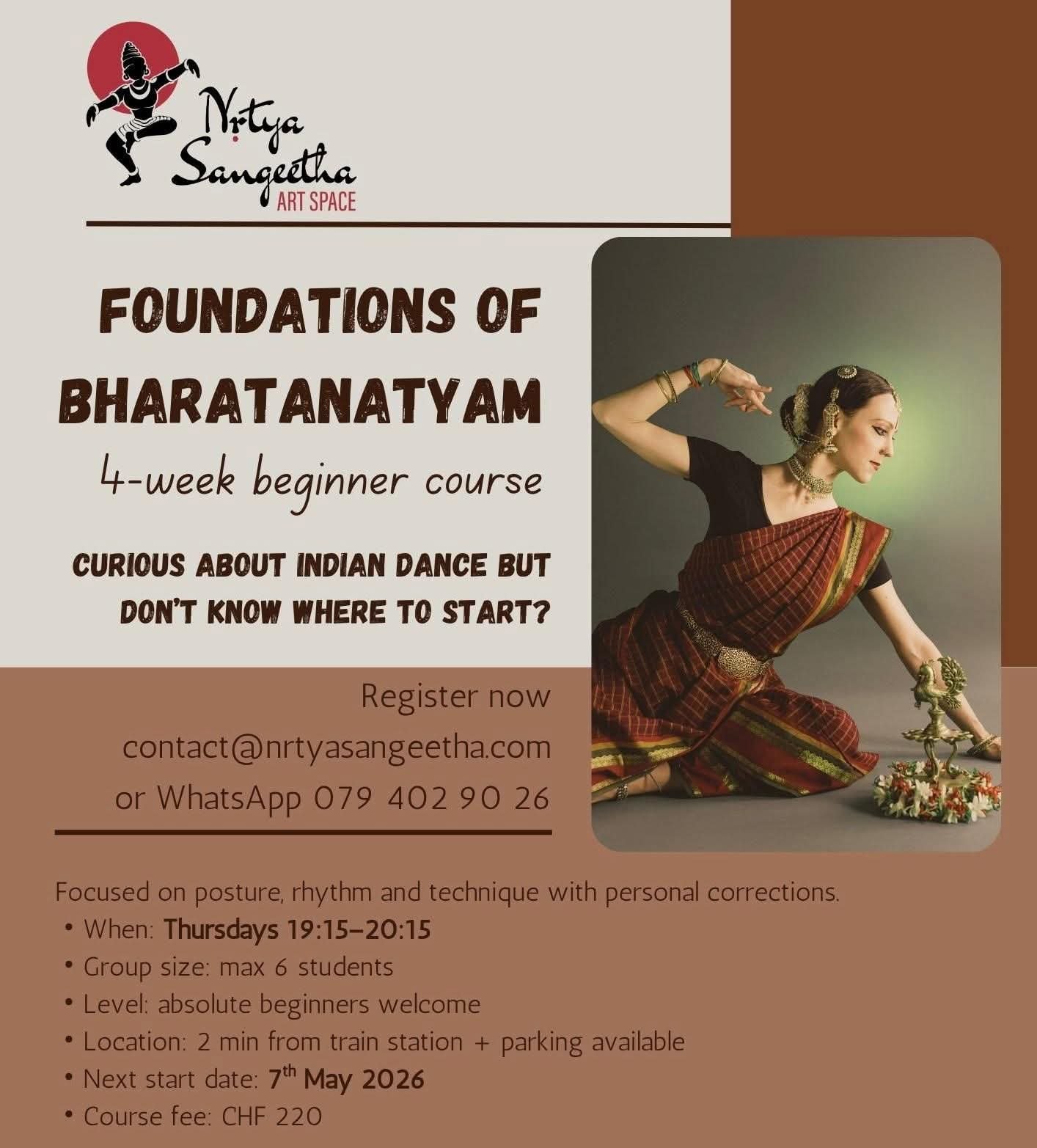 Step into the World of Bharatanatyam – Beginners Course by Nritya Sangeetha Art Space.