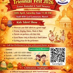 Join Munich Tamil Kudumbam e.V. for a vibrant celebration bringing together Easter, Ramadan, and Tamil New Year under one roof!