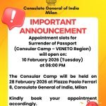 Passport Surrender Services Consular Camp in Veneto Region Appointment booking opens 10 February 2026