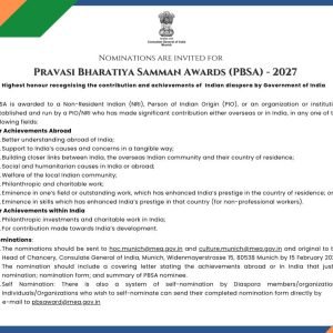 Nominations Open for Pravasi Bharatiya Samman Awards 2027