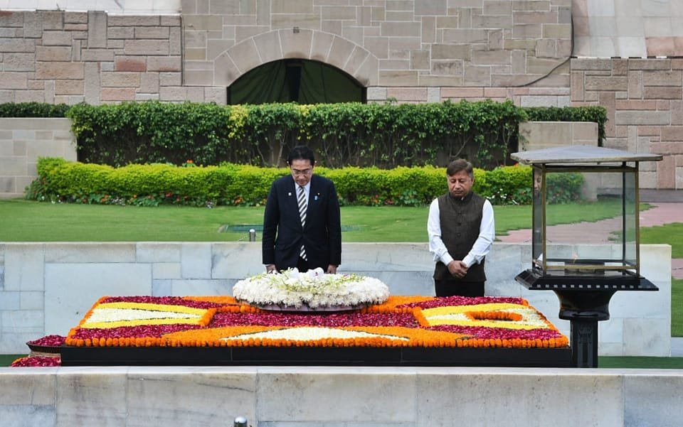 PM Fumio Kishida of Japan offered floral tributes at Rajghat paying his respects to Mahatma Gandhi